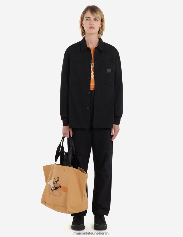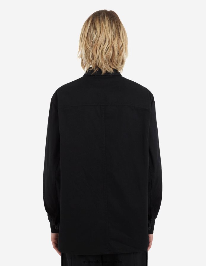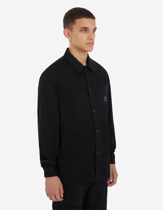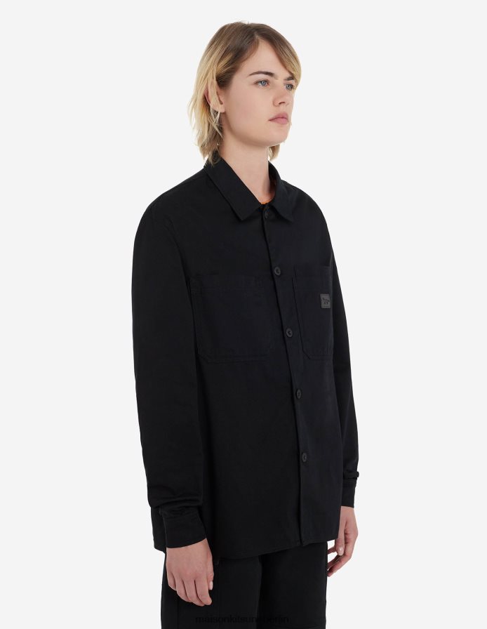 Kleidung V2DHL268 lang schwarz Männer Café-Arbeitshemd Maison Kitsune