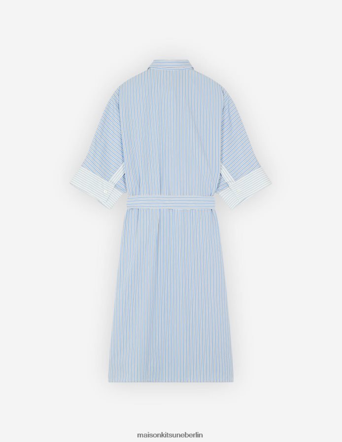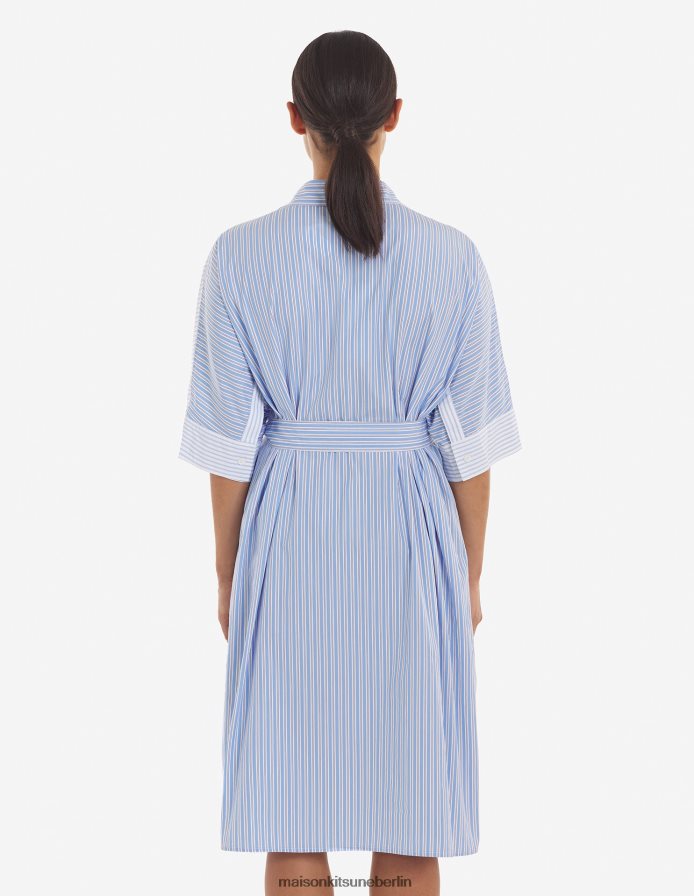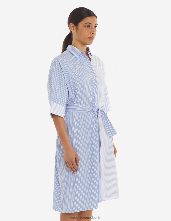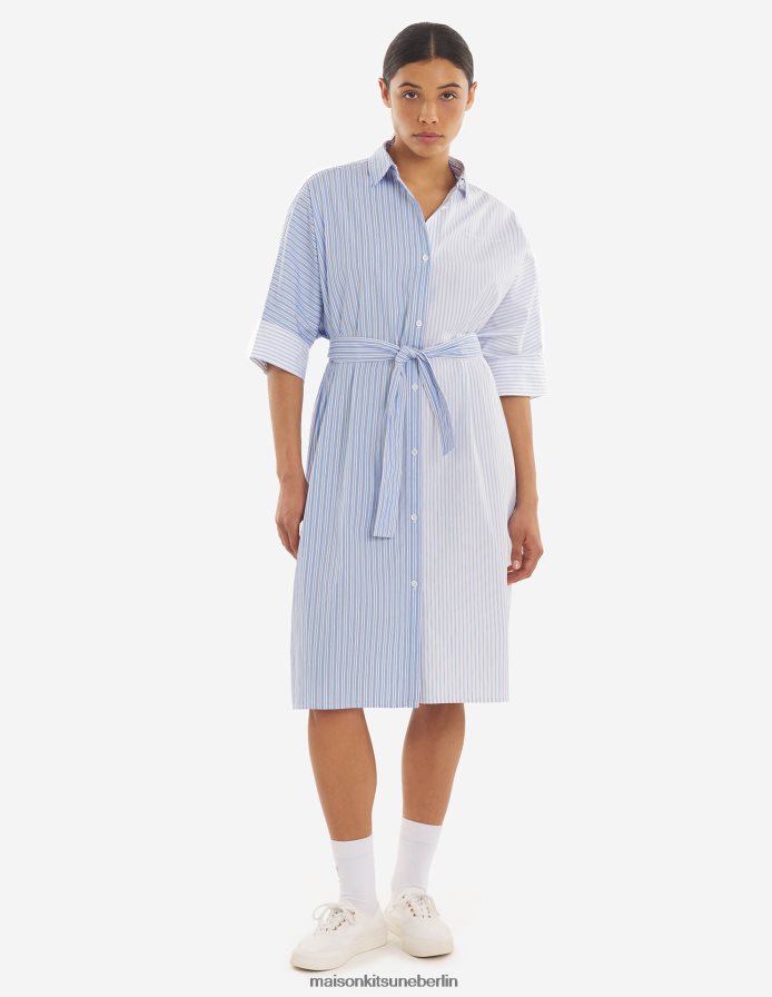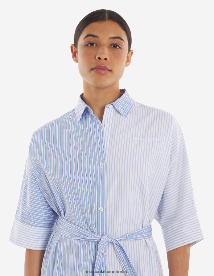 Kleidung V2DHL468 blaue Farbblockstreifen Frauen Kastenförmiges Hemdkleid Maison Kitsune