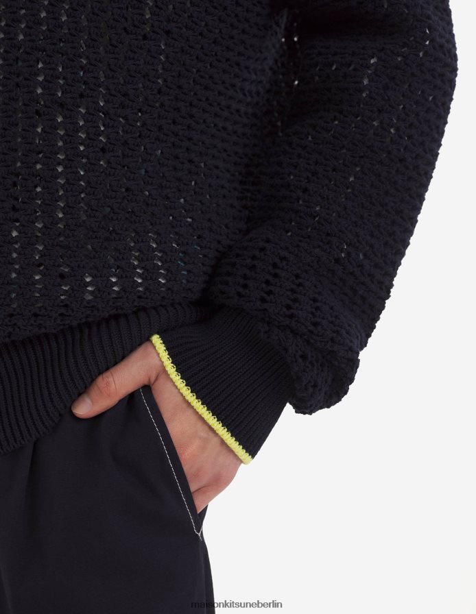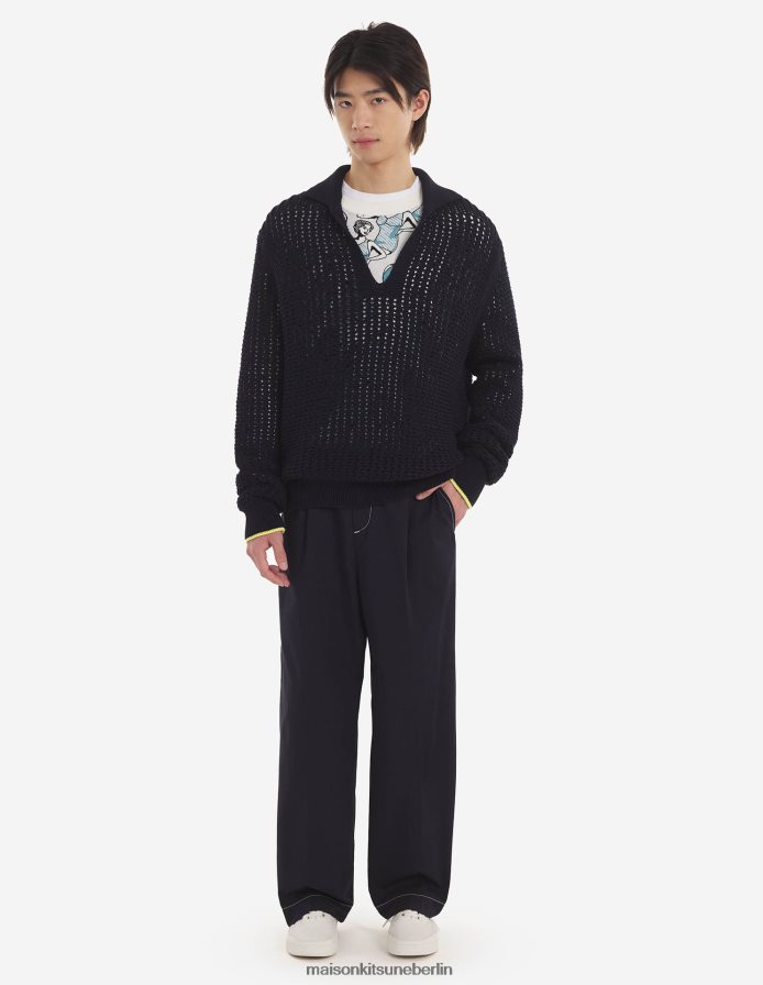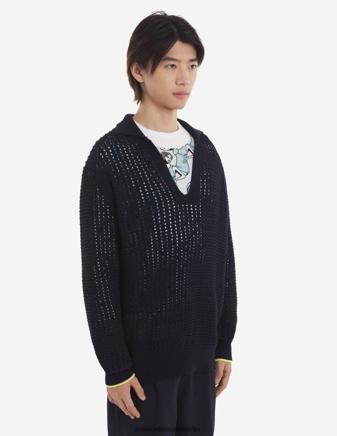 Kleidung V2DHL121 Marine Männer Strukturierter Polopullover Maison Kitsune