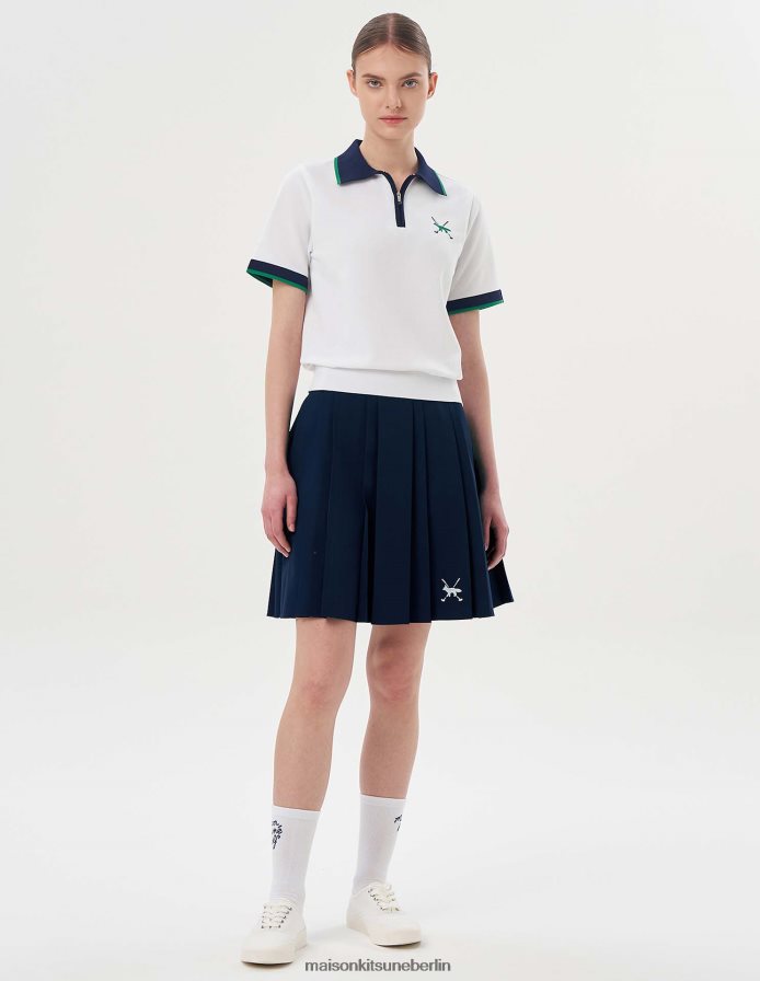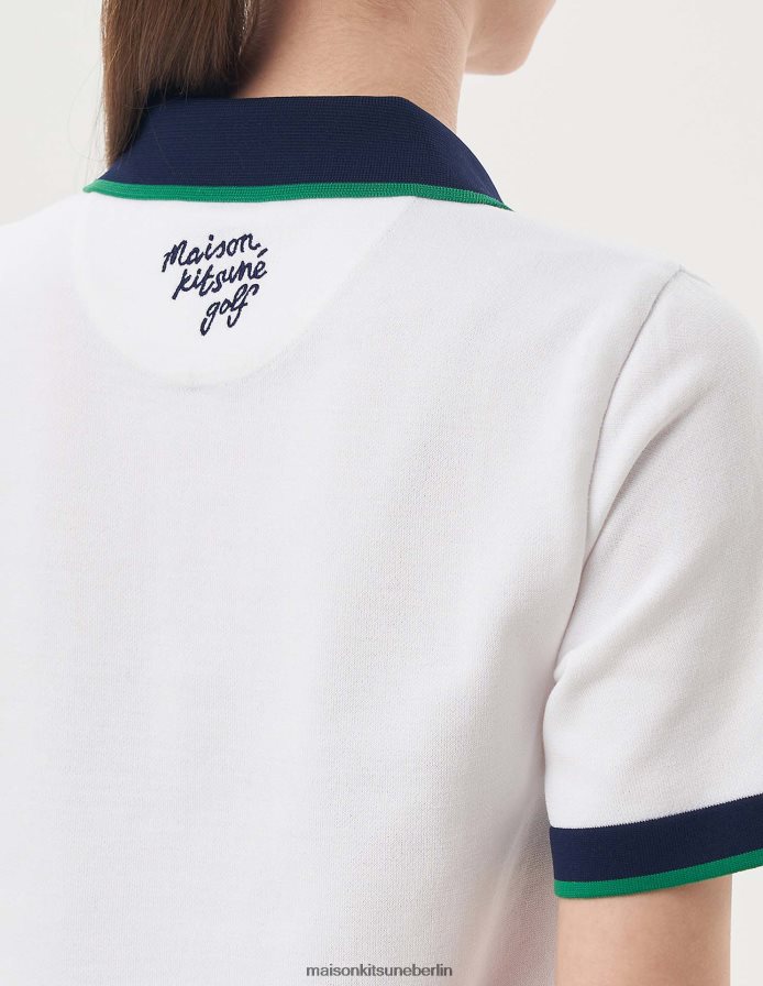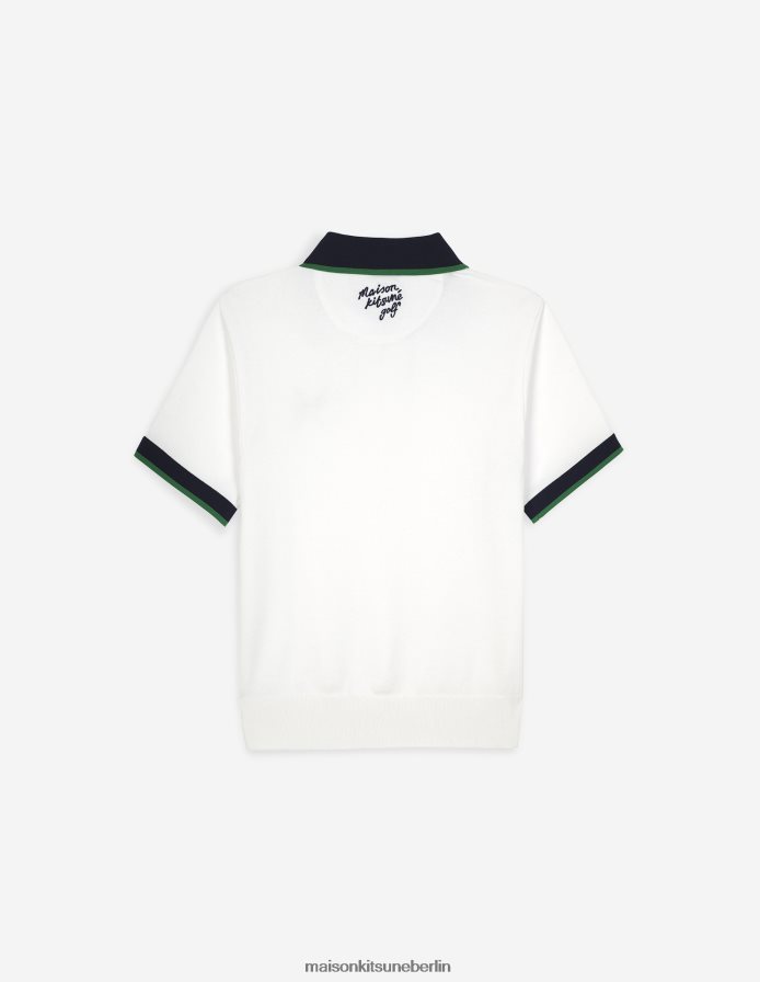 Kurzarm-Strickpoloshirt. Klassischer Schnitt mit gesticktem Profil-Fuchs-Aufnäher auf der Brust und „Maison Kitsune Golf“ auf der Rückseite. - Poloshirt aus Baumwollmischung- klassischer Schnitt- gerippte kurze Ärmel- Kragen und Ärmel in Kontrastfarbe- Polokragen mit Reißverschluss- gestickter Profil-Fuchsaufnäher auf der Brust- gestickter Schriftzug „Maison Kitsune Golf“ auf der Rückseite
