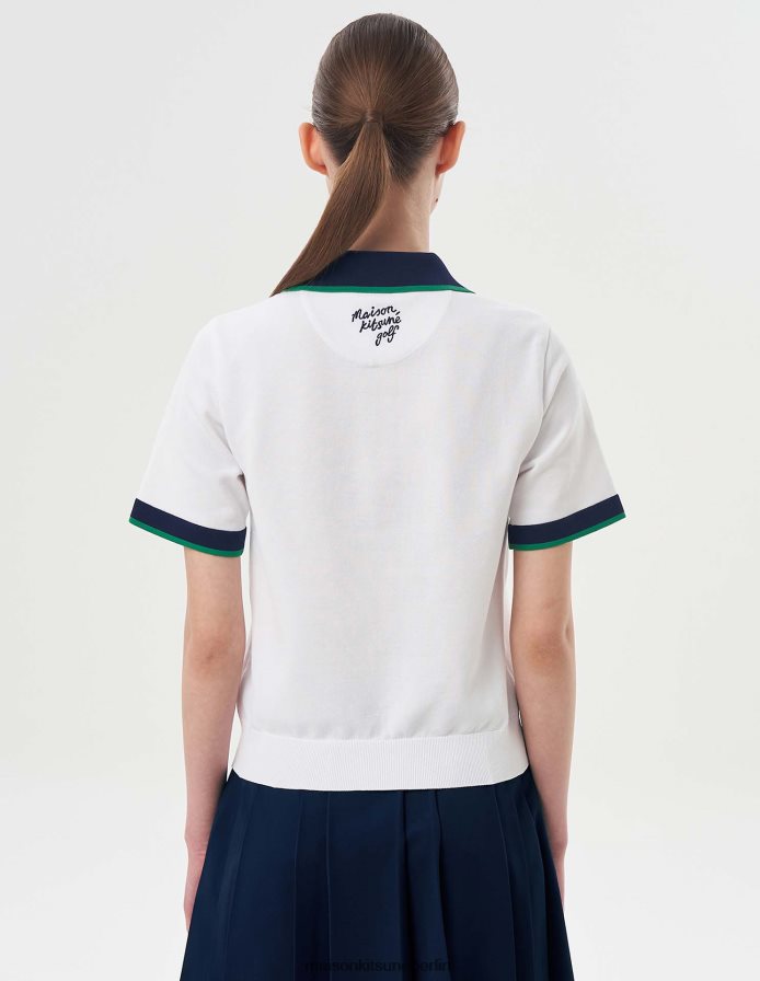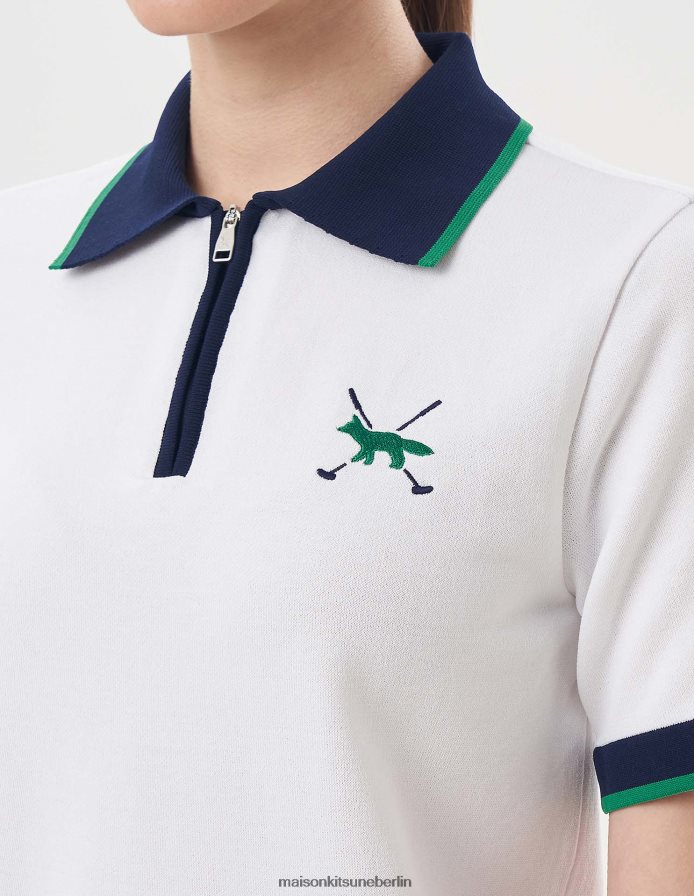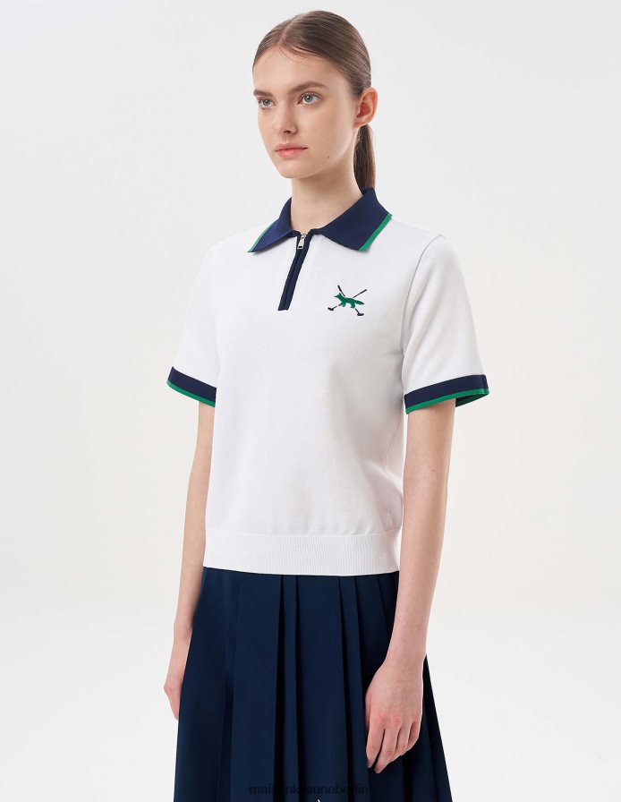 Kleidung V2DHL394 Weiß Frauen Profile Fox Strick-Poloshirt Maison Kitsune
