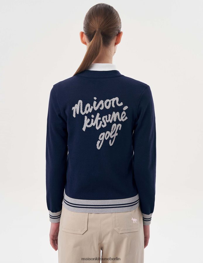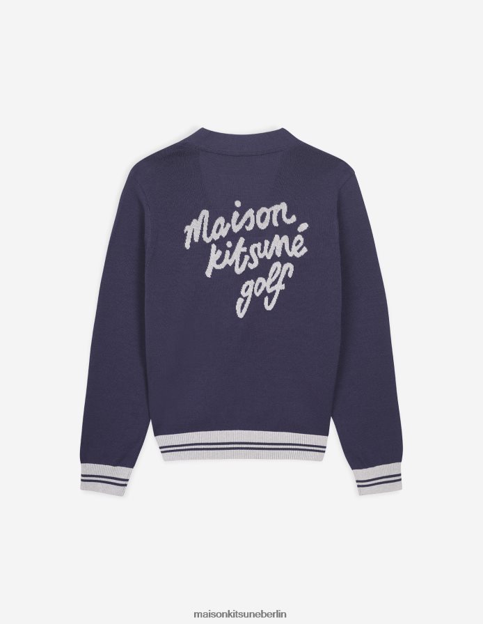 Strickjacke aus Baumwolle mit V-Ausschnitt. Klassischer Schnitt mit gesticktem Fuchskopf-Aufnäher auf der Brust und „Maison Kitsune Golf“ auf der Rückseite. - Strickjacke aus Baumwollmischung- klassischer Schnitt- V-Ausschnitt- Rippenbündchen mit Kontraststreifen an den Bündchen und am Ausschnitt und Taille- Knopfverschluss- gestickter Fuchskopfaufnäher auf der Brust- „maison kitsune golf“-Aufdruck auf der Rückseite