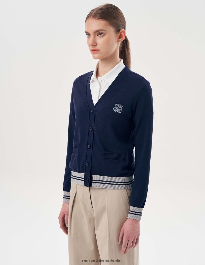 Kleidung V2DHL430 dunkles Marineblau Frauen Strickjacke mit Fuchskopf Maison Kitsune