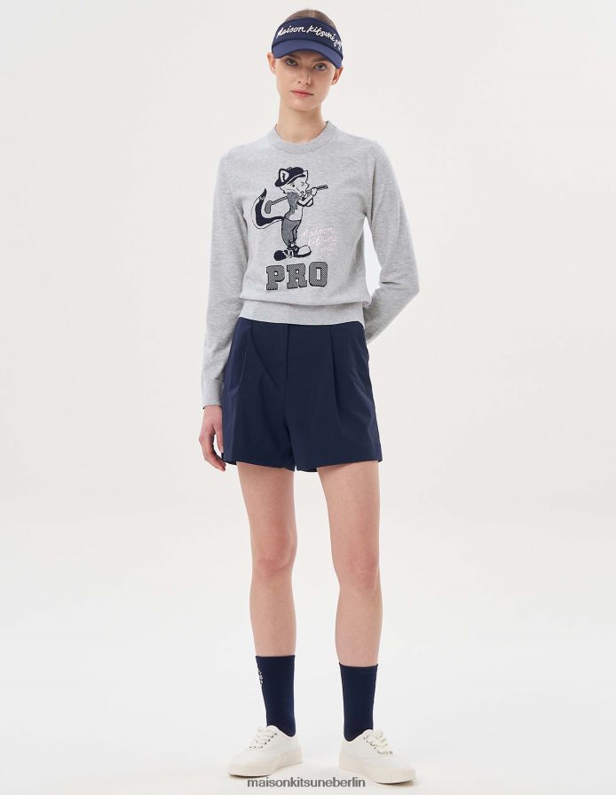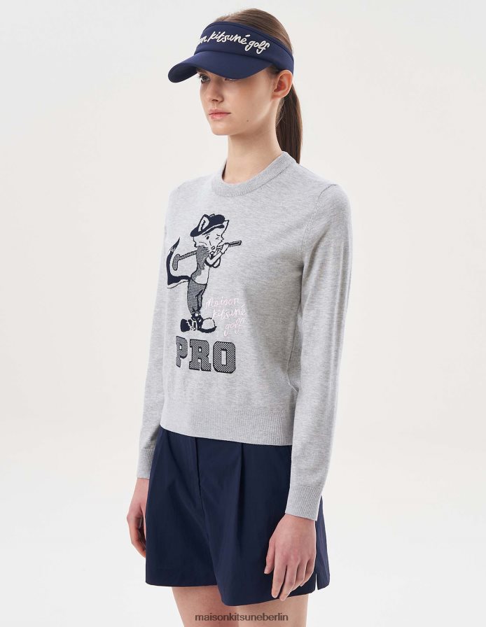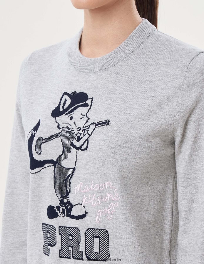 Kleidung V2DHL431 graue Melange Frauen Stehfuchs-Pullover Maison Kitsune