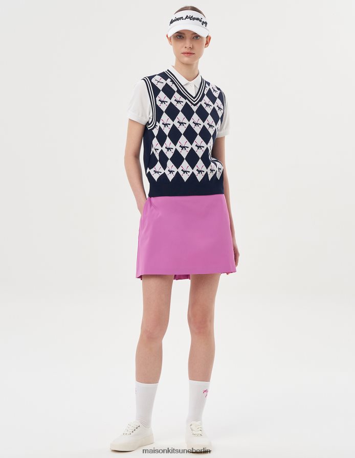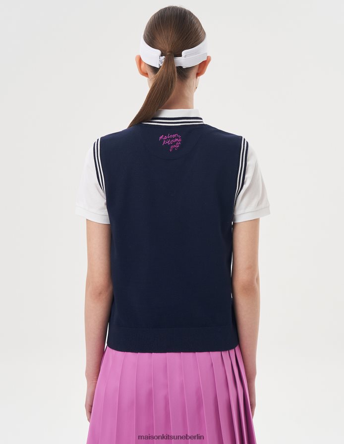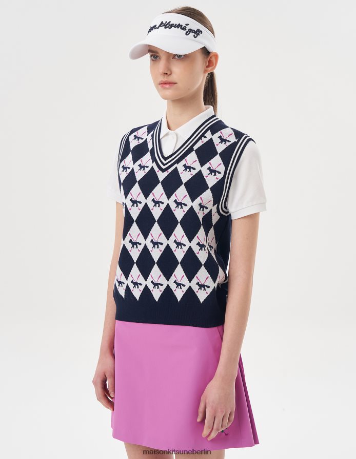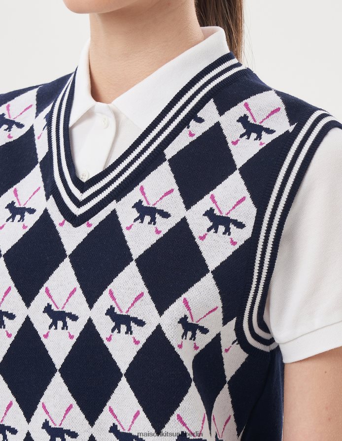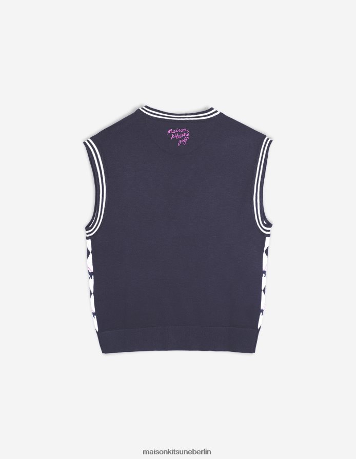 Kleidung V2DHL433 dunkles Marineblau Frauen Profilfuchs-Argyle-Weste Maison Kitsune