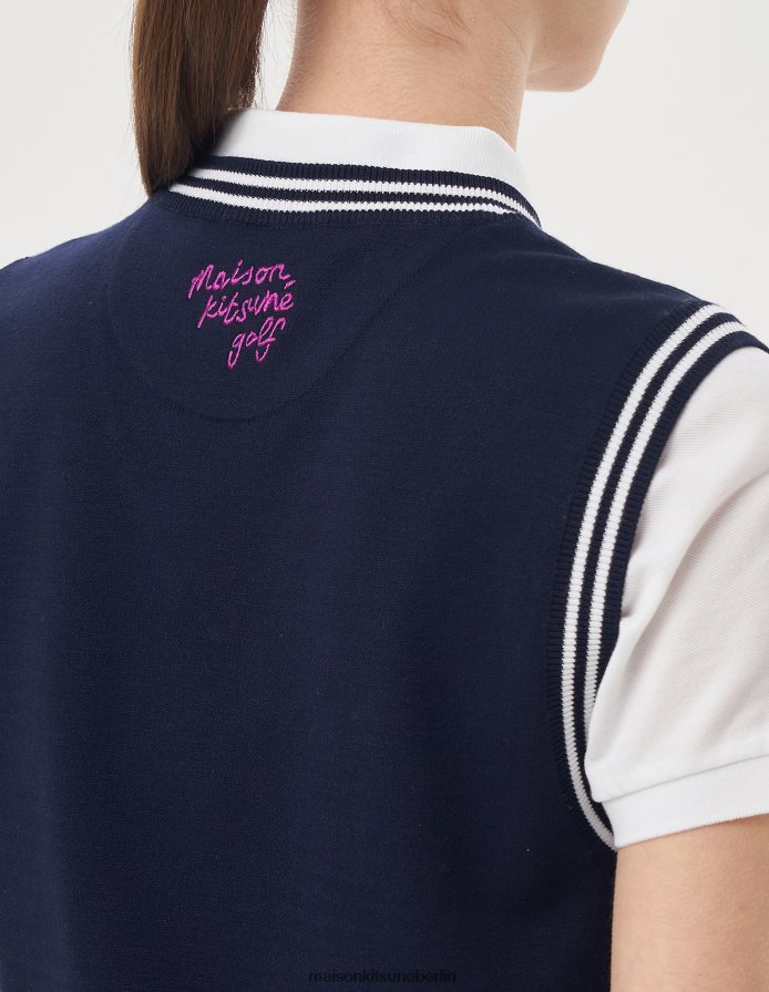 Ärmellose Strickweste mit Profilfuchs-Aufdruck und „Maison Kitsune Golf“-Stickerei auf der Rückseite. - ärmellose Strickweste- Profilfuchs-Aufdruck- Rippenbündchen mit Kontraststreifen am Halsausschnitt und an den Armlöchern- schlichter Rücken mit besticktes „Maison Kitsune Golf“