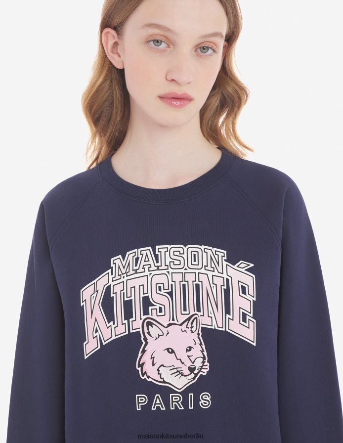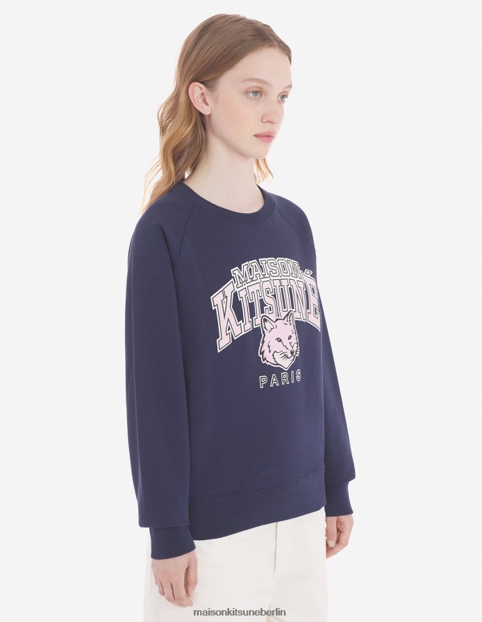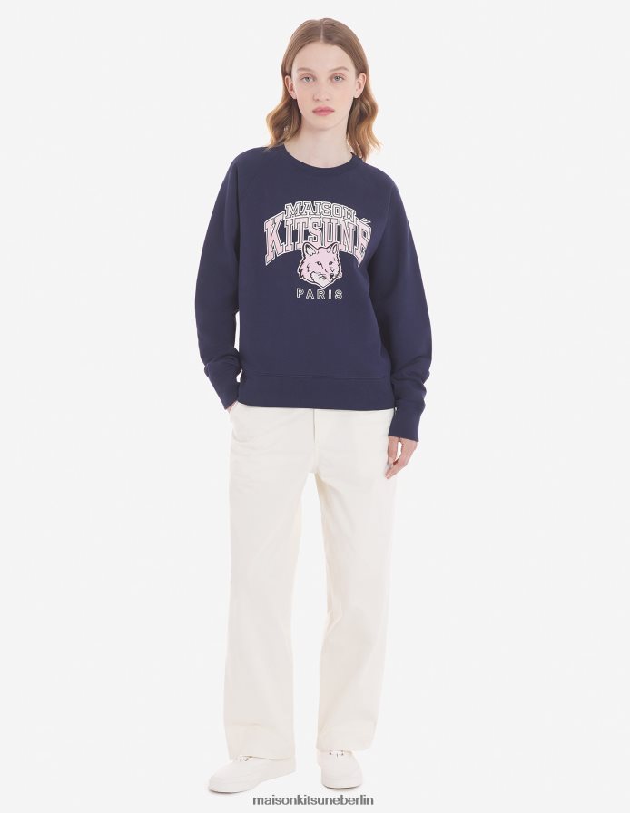 Kleidung V2DHL411 Marine Frauen Campus Fox angepasstes Sweatshirt Maison Kitsune