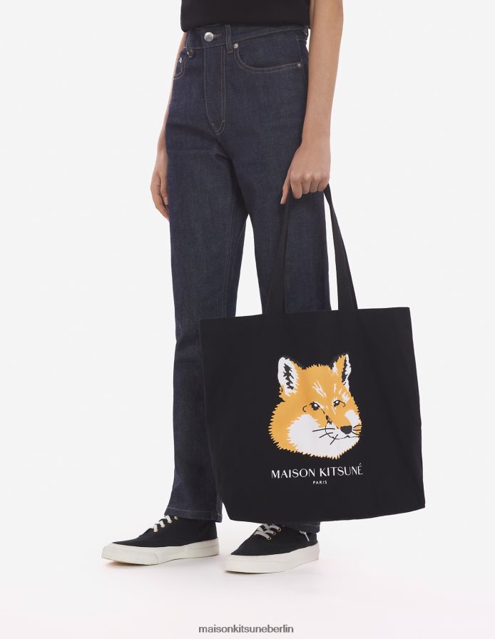 Startseite| Zubehör| Taschen und Lederwaren| Zubehörteil V2DHL529 Schwarz unisex Fuchskopf-Einkaufstasche Maison Kitsune