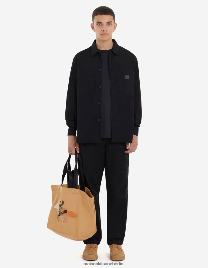 Canvas-Einkaufstasche mit geflocktem Fox-Café-Profil und der Aufschrift „Café Kitsune“.- Doppelgriffdesign zum Tragen in der Hand oder über der Schulter- XXL-beflockter Farbblock-Stil Profile Fox Cafe- Kontrastschriftzug „cafe kitsune“ auf der Vorderseite und schlichte Rückseite